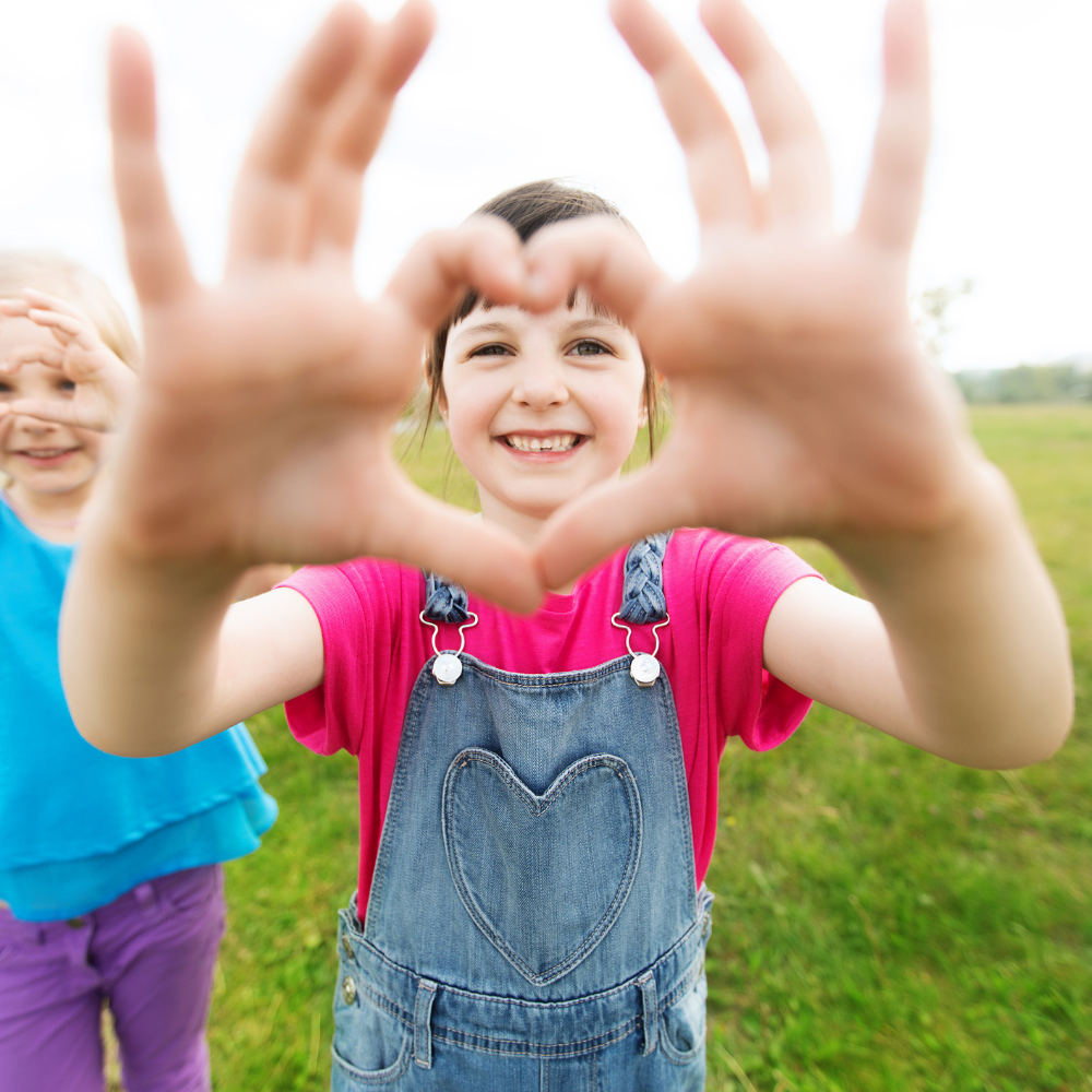 Young girl forming a heart shape with her hands, symbolising the love and support your donation provides to children with congenital heart disease.